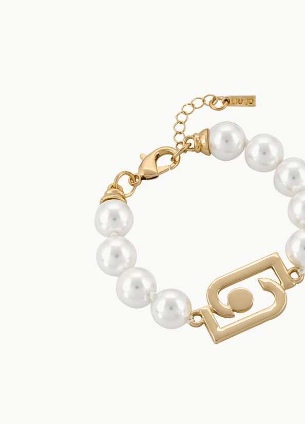Armband aus Glasperlen und Monogramm aus Zinklegierung. Verstellbarer Karabinerverschluss.