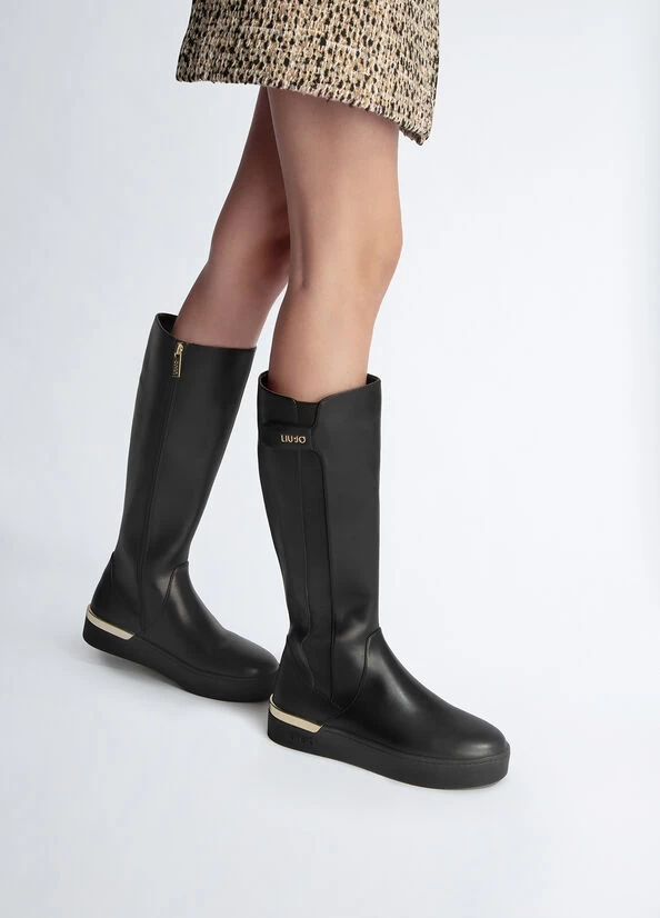 Hohe Schwarze Stiefel Mit Logo