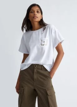 T-Shirt Mit Tasche Und Strass